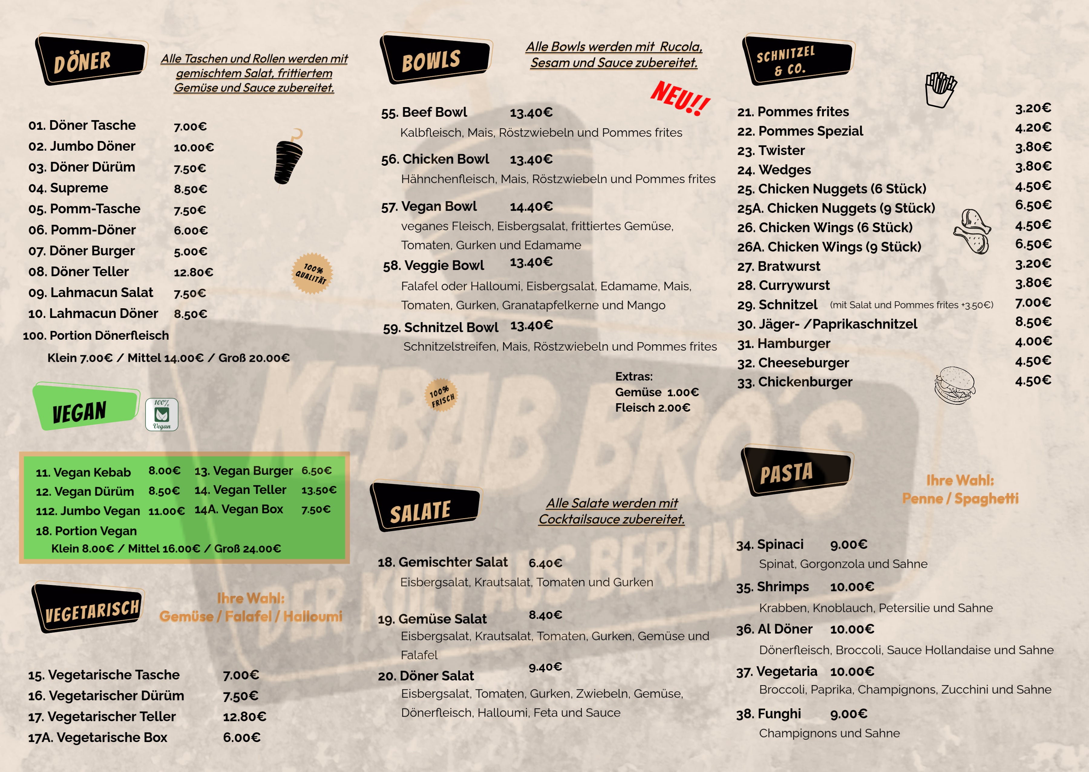 In unserem Lokal können Sie alle Gerichte vor Ort genießen, selbst abholen oder sich nach Hause liefern lassen.